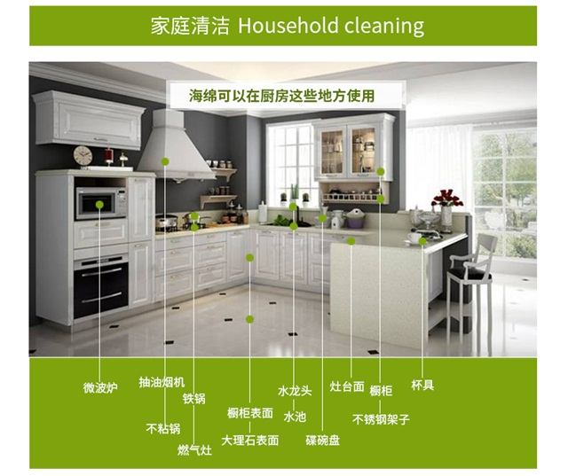 納米海綿在家庭清潔中可以發揮很大的用處,使用范圍廣泛??蛷d的沙發,桌椅,地板,墻壁和書柜都可以用納米海綿來擦拭,納米海綿擁有不俗的清潔力,甚至清潔劑無法除去的污漬,用納米海綿都能擦拭得干凈。從臥室到廚房,幾乎任何可以觸水之處都能使用納米海綿。